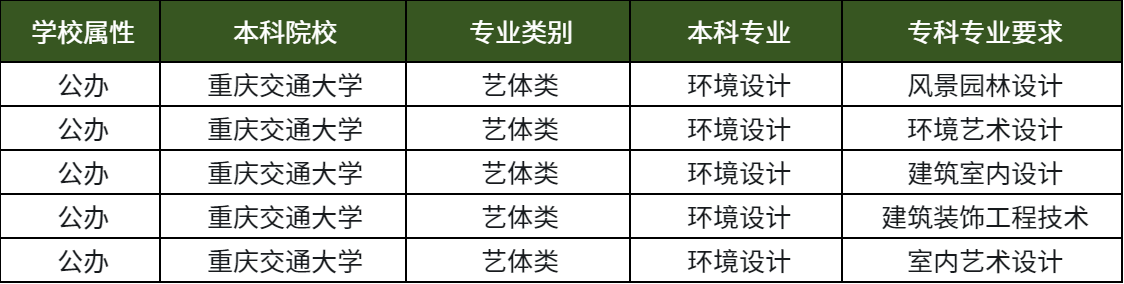 以下是2025年重庆专升本考试,重庆交通大学的环境设计专业招生的一览表,供大家参考。