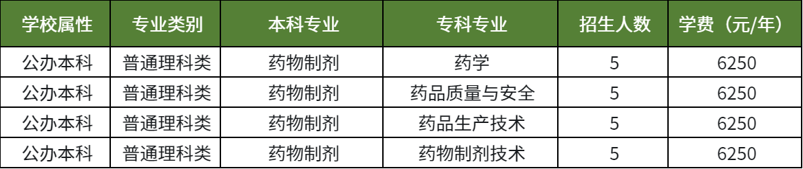 以下是2025年重庆专升本考试,重庆医科大学的药物制剂专业招生的一览表,供大家参考
