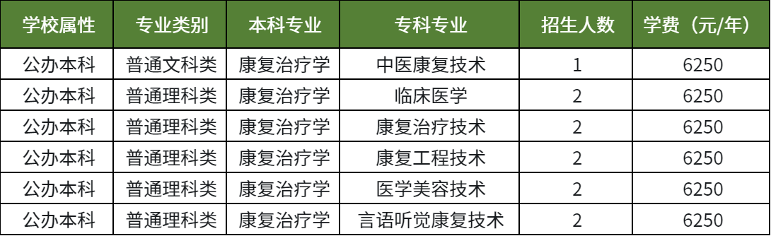 以下是2025年重庆专升本考试,重庆医科大学的康复治疗专业招生的一览表,供大家参考。