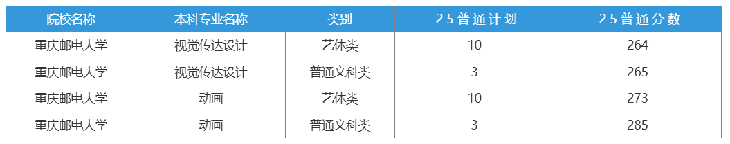 重庆邮电大学2025年招生计划低于10人的4个专业,像普通文科类视觉传达设计专业仅招3人,录取分数线265分;艺体类的动画专业则仅招收10人 。这类小计划招生专业,报考人数与竞争格局独特,分数线受报考热度、考生质量影响大。