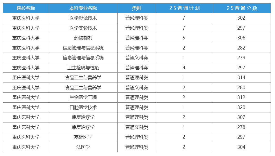 重庆医科大学2025年招生计划低于10人的14个专业,像普通理科类医学影像技术专业仅招7人,录取分数线302分;生物医学工程专业则仅招收2人 。这类小计划招生专业,报考人数与竞争格局独特,分数线受报考热度、考生质量影响大。
