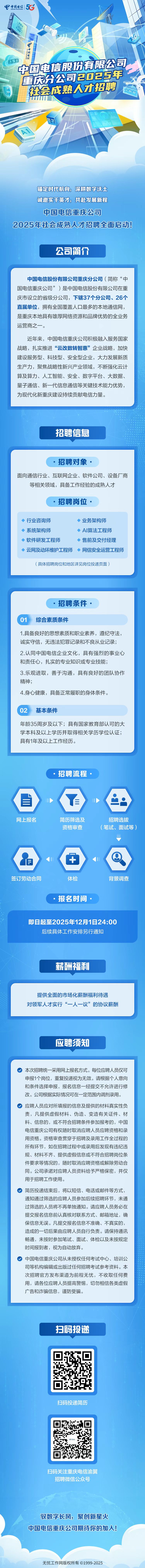 中国电信重庆分公司2025社会成熟人才招聘公告